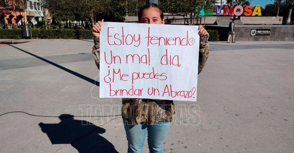 Jovencita pide abrazos en Reynosa para superar un problema familiar