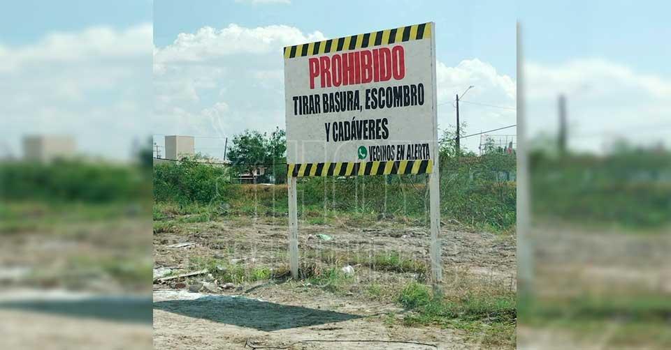 Colocan letrero en Reynosa con la frase “Prohibido tirar cadáveres”