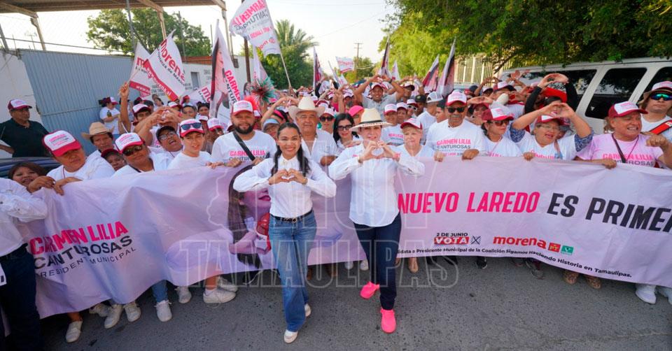 Recorre Carmen Lilia Canturosas junto a Cristabell Zamora y grupo de priistas colonia Hidalgo