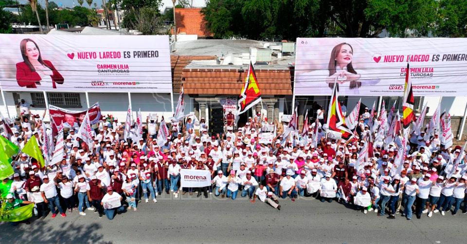 Se unen cientos de neolaredenses a pegoteo en apoyo a Carmen Lilia Canturosas
