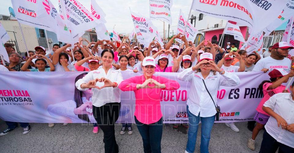 Respaldan vecinos de Villas de San Miguel a Carmen Lilia Canturosas y candidatos de Morena