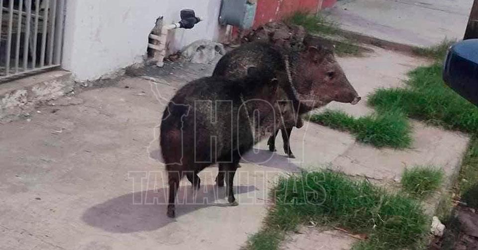 Pareja de jabalíes siembran el “terror” en colonia de Nuevo Laredo