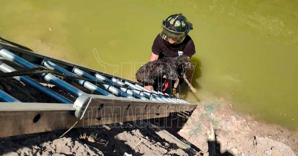 Rescatan a perrito que cayó a un canal en Nuevo Laredo