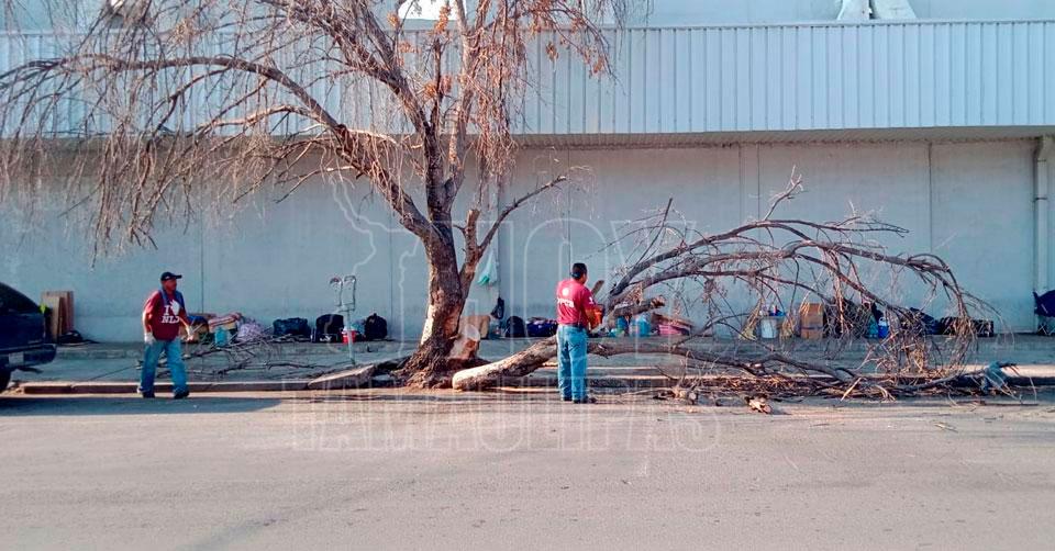 Por seguridad, derriban árbol a un costado de un centro comercial en Nuevo Laredo