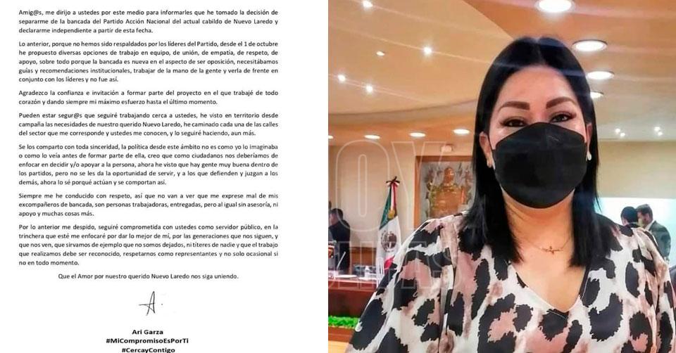 Regidora de Nuevo Laredo abandona al PAN; se hace independiente