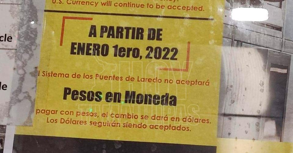 Ya no aceptarán pesos en el Puente Internacional I de Laredo, Texas
