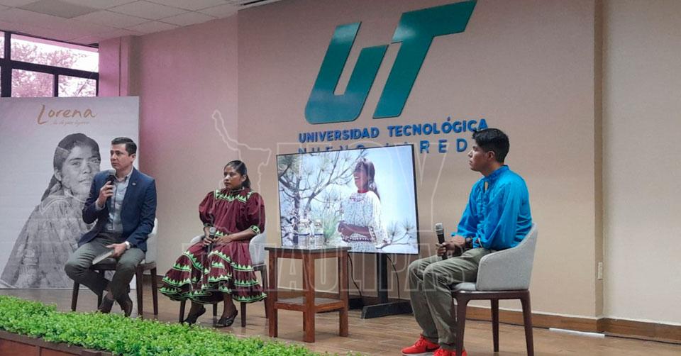 La corredora rarámuri Lorena Ramírez ofrece plática a alumnos de la UTNL