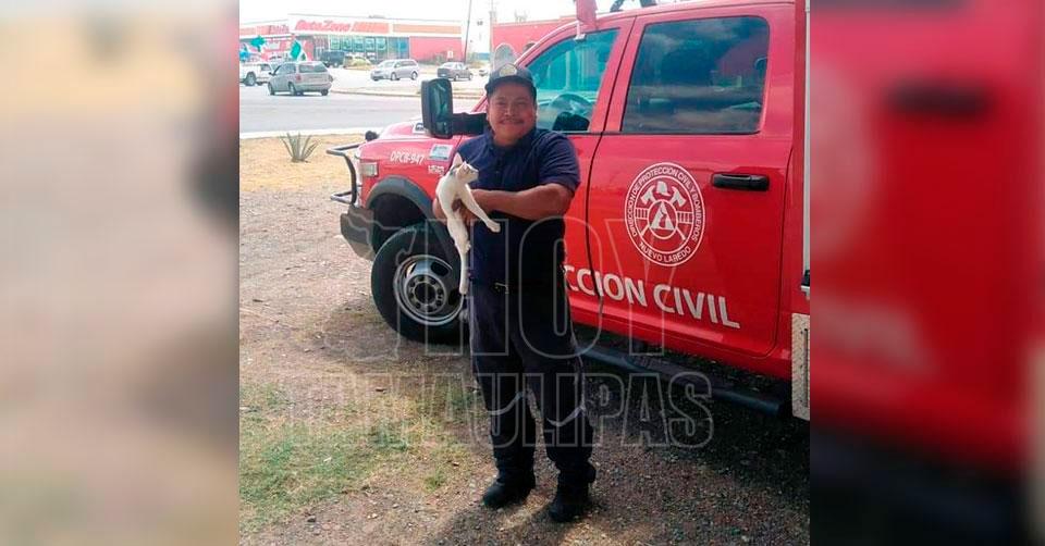 Rescatan bomberos a gatito atrapado en un puente en Nuevo Laredo