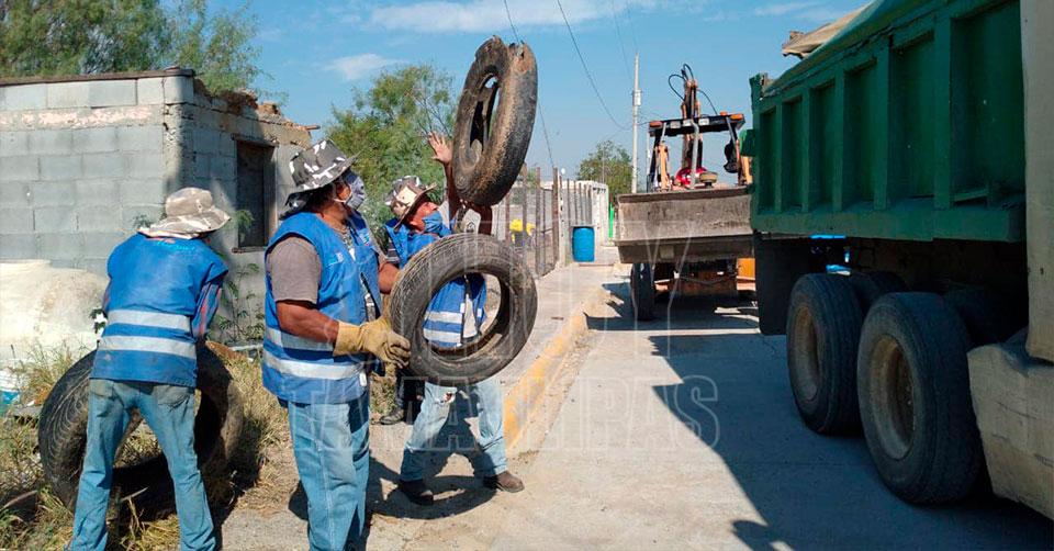 En Nuevo Laredo: Limpian calles y levantan llantas en Centros de Acopio