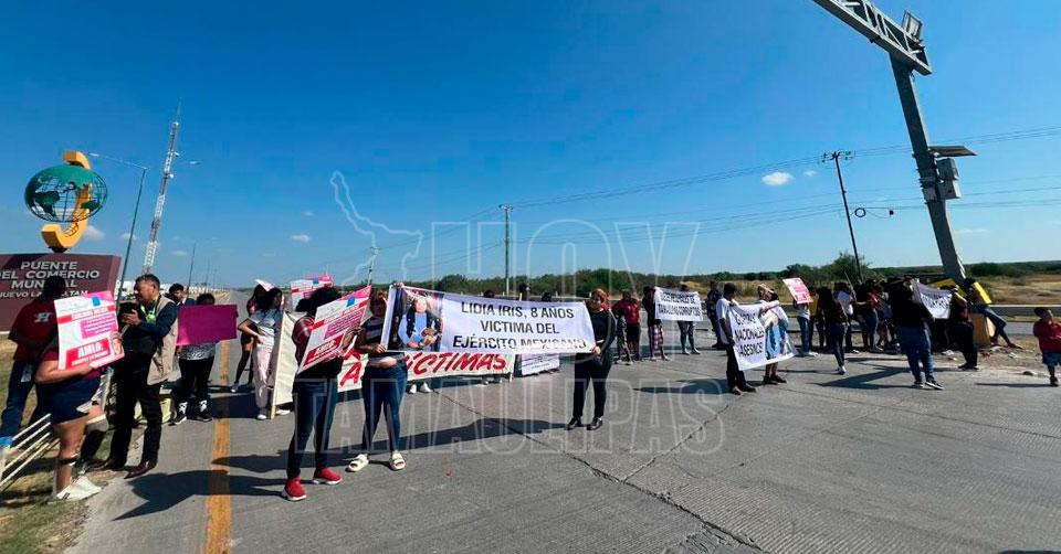 Bloquean acceso al Puente Comercio Mundial en Nuevo Laredo; exigen justicia