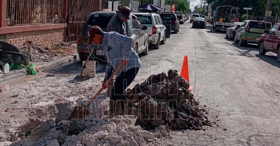 Gobierno de Matamoros atiende fuga de agua en la zona centro