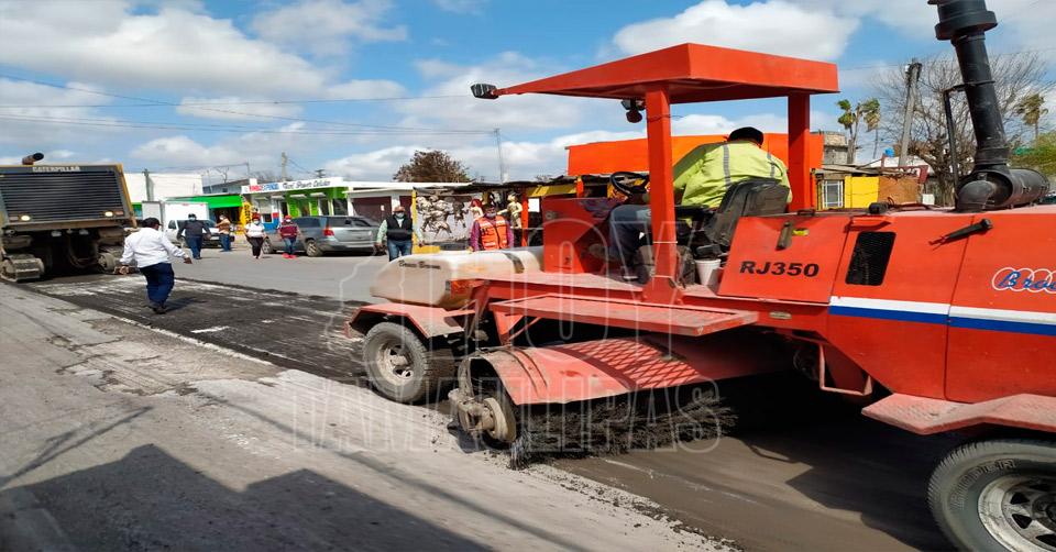 Sigue Gobierno de Matamoros con trabajo intenso; ahora activa obra de pavimentación en la calle Camino Real