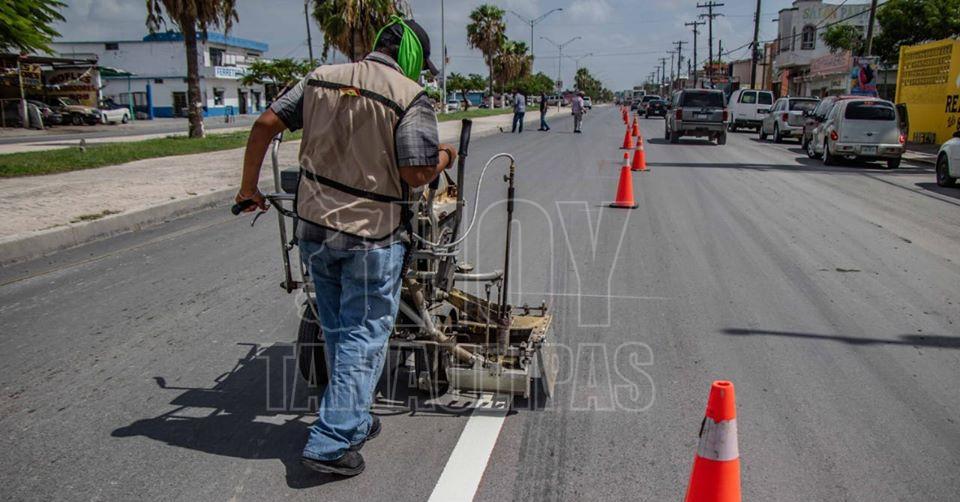Realizan pintado de carriles en Avenida del Niño en Matamoros