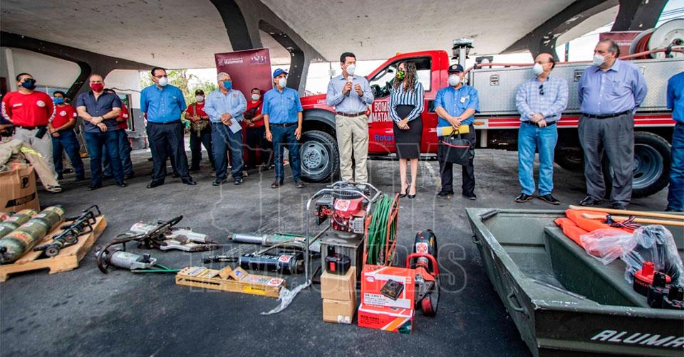 Recibe Mario López donación de equipo para bomberos de Matamoros
