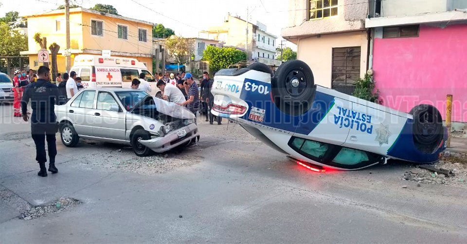 Polis participan en choque volcadura en Ciudad Madero