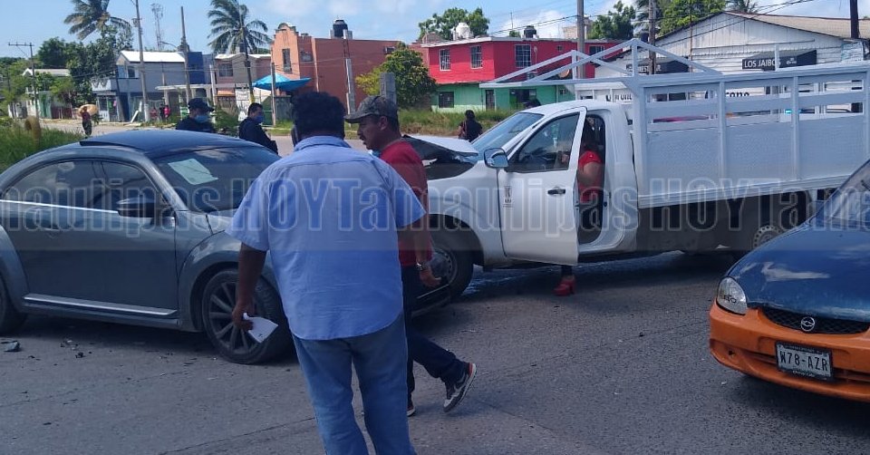 Chocan camioneta y compacto en Ciudad Madero; un herido