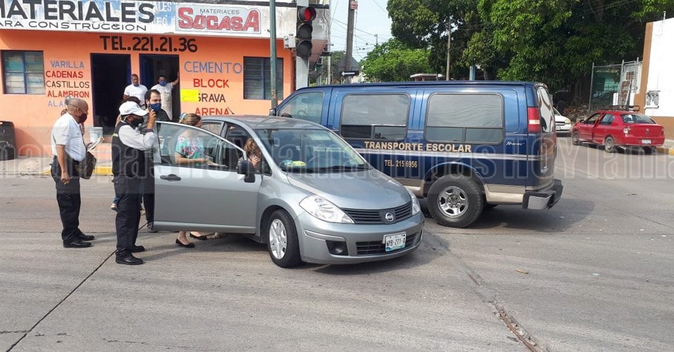 Choca mujer contra camioneta de transporte escolar en Ciudad Madero