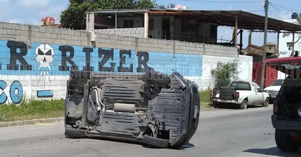 Ocasiona choque múltiple y termina volcado en Ciudad Madero