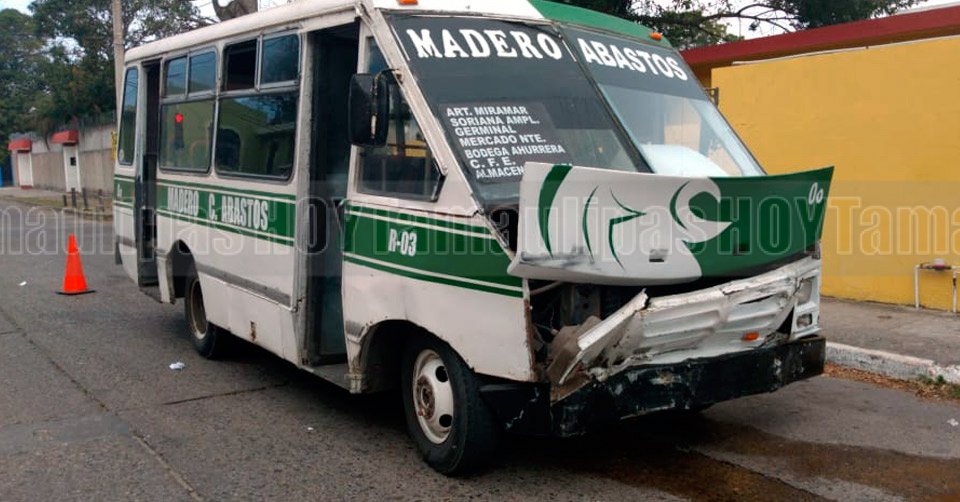 Microbusero se pasa alto y provoca choque en Ciudad Madero