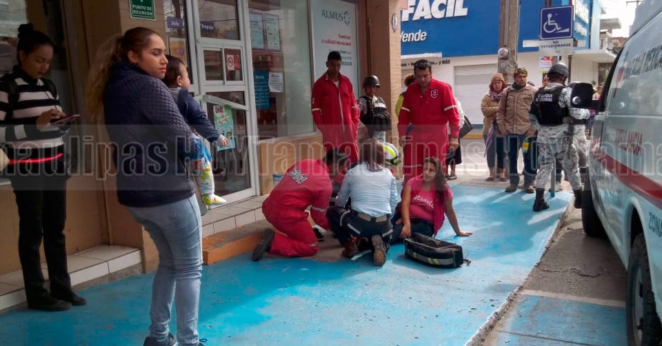 Mujer se golpea al resbalarse en rampa en centro de Ciudad Madero