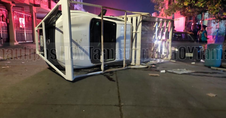 Camioneta se impactó con vehículo estacionado y terminó volcada en Madero