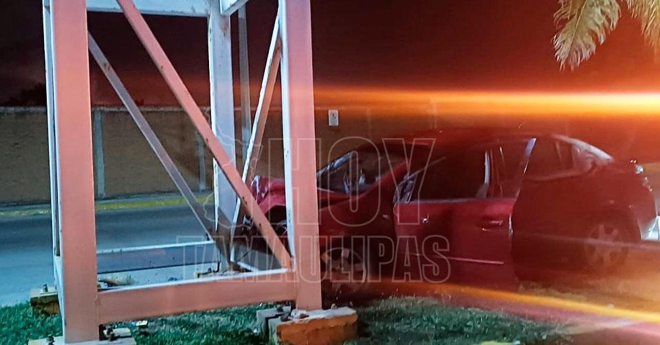 Abandonan carro estrellado contra la base del anuncio de "Bienvenidos a Playa Miramar"