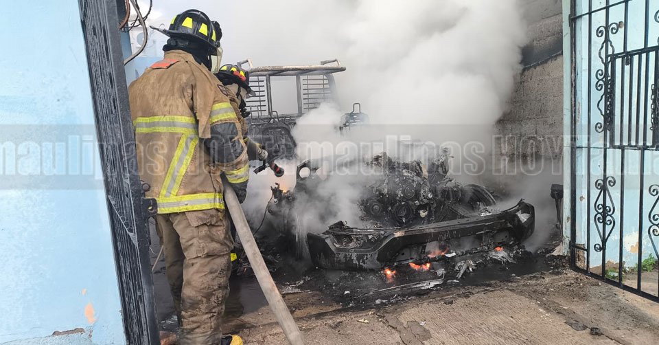Voraz incendio consume camioneta en cochera de vivienda en Ciudad Madero