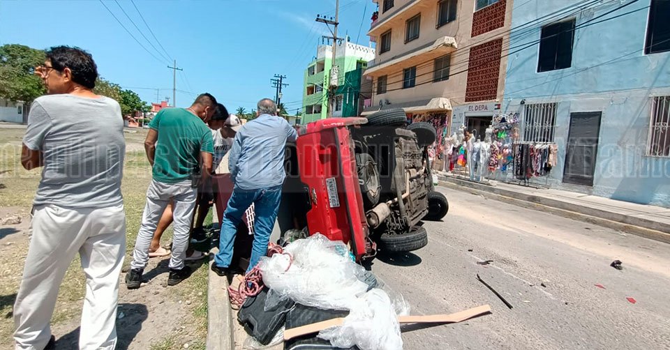 Fuerte choque y volcadura dejó dos lesionados y cuantiosos daños en Madero