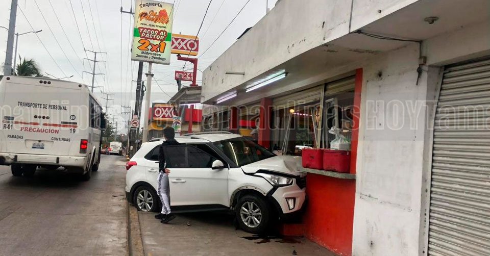 Estrellan lujosa camioneta contra taquería en Ciudad Madero