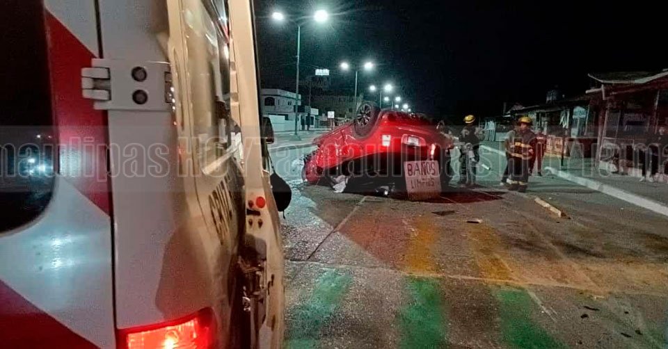 Policías resultan lesionados en Madero al ser chocada su patrulla por camión de volteo