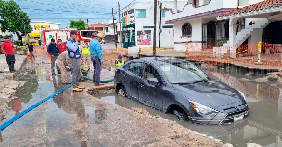 Ignora señalamientos y cae a calle en obra en Madero