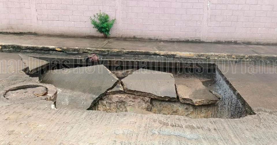 Socavón e inundaciones tras tormenta en Ciudad Madero