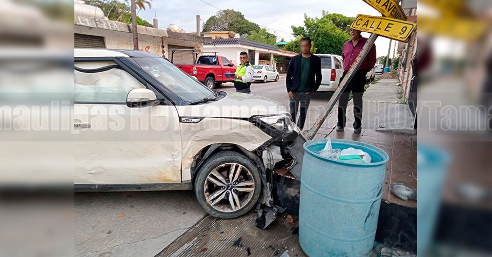 Imprudente conductor se pasó un alto y provocó aparatoso choque en Madero
