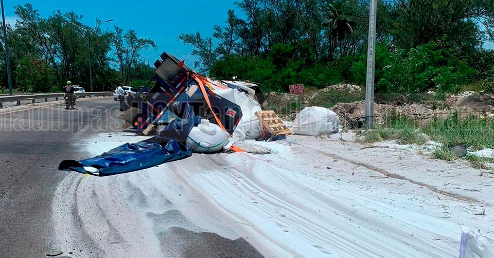 Acelerado trailero volcó en el Corredor Urbano en Ciudad Madero