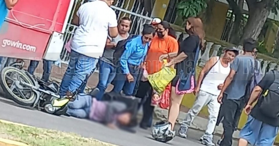 Por ir “en la baba” motociclista se ensarta contra microbús en Madero