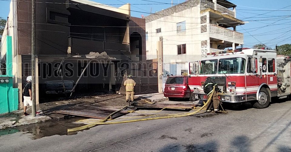 Incendio arrasa con camioneta y alcanza una casa en Madero