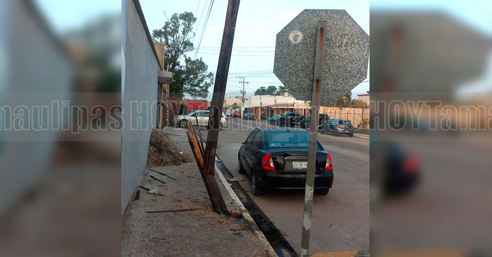 Tumba poste de Telmex con su carro en Madero