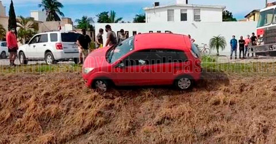 Carro casi cae a canal en fraccionamiento de Madero