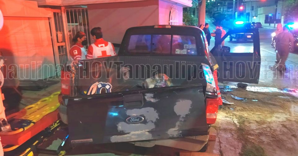 Se “ensarta” en su camioneta contra casa y queda prensado en Madero