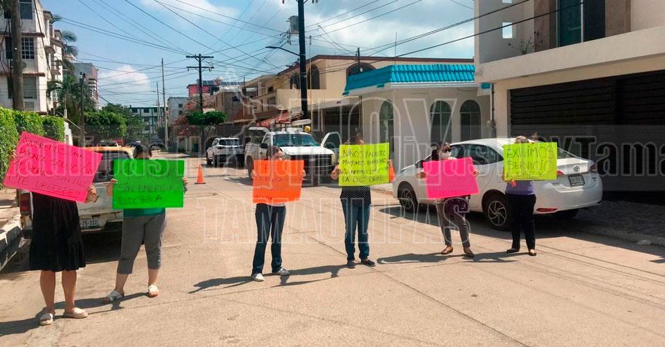 Con bloqueos exigen luz en dos colonias de Ciudad Madero