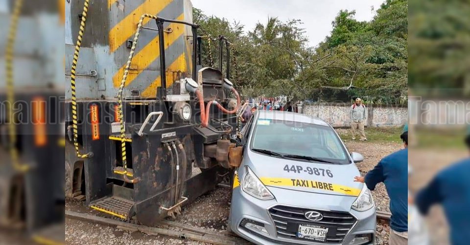 Tren se lleva taxi en el paso del Zacate en Madero; no hay lesionados