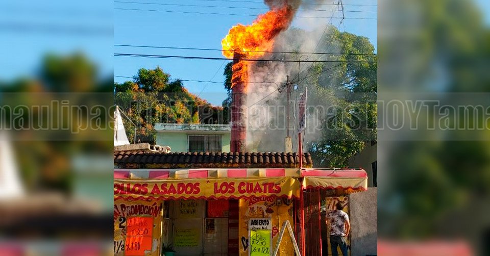Se incendia chimenea de negocio de pollos asados en Ciudad Madero