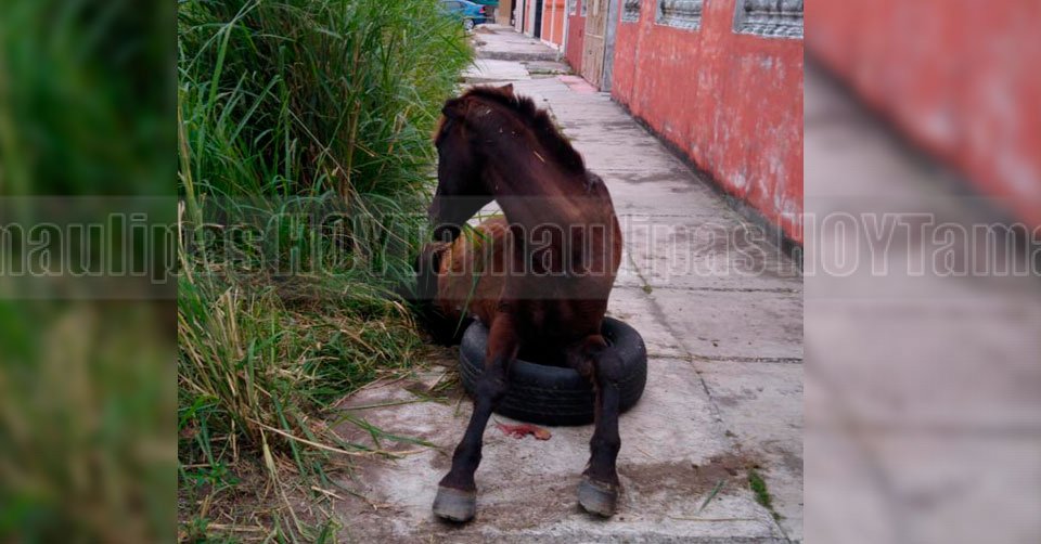 Caballo cae a alcantarilla de aguas negras en Ciudad Madero