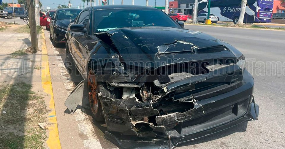 Destrozó su Mustang al impactarse atrás de un Toyota Yaris en Altamira
