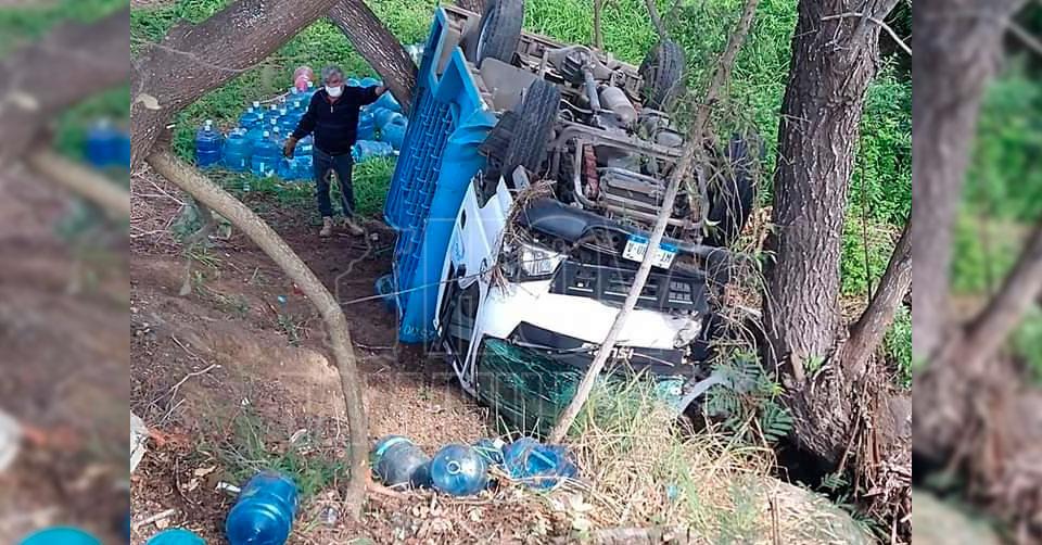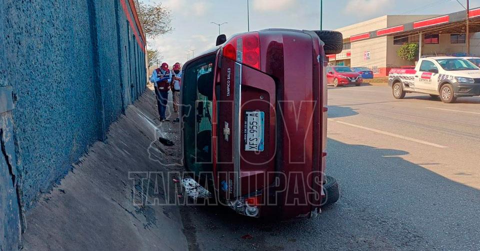 Choca contra barda y vuelca en Altamira; hay dos lesionadas