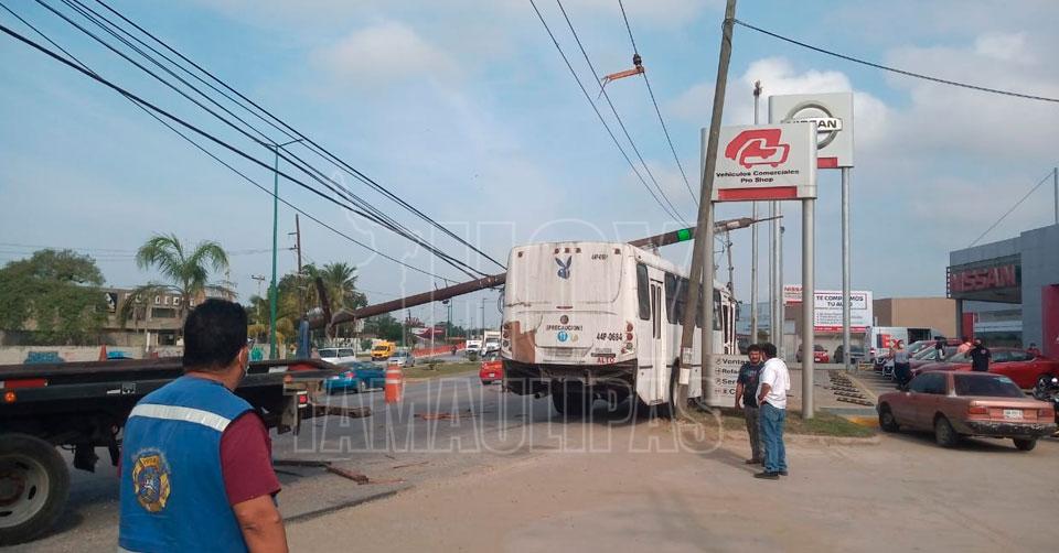 Choca autobús urbano y tumba poste de la CFE en Altamira