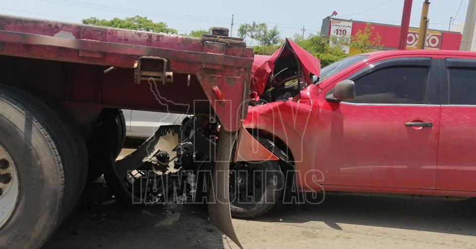 Se estampa camioneta en plataforma de tráiler en Altamira