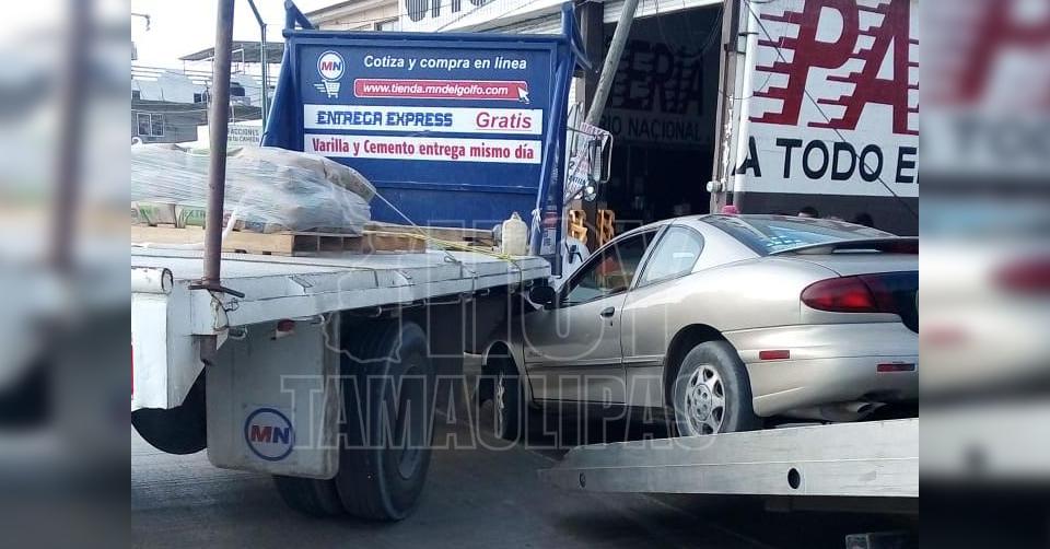 Carro se impacta en camión materialista en el sur de Altamira