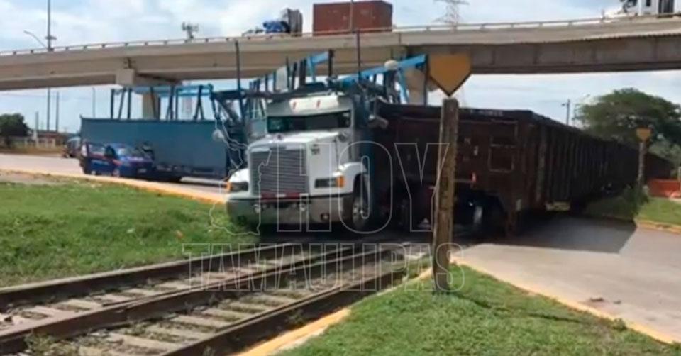Tren se lleva a tráiler nodriza en el Puerto de Altamira