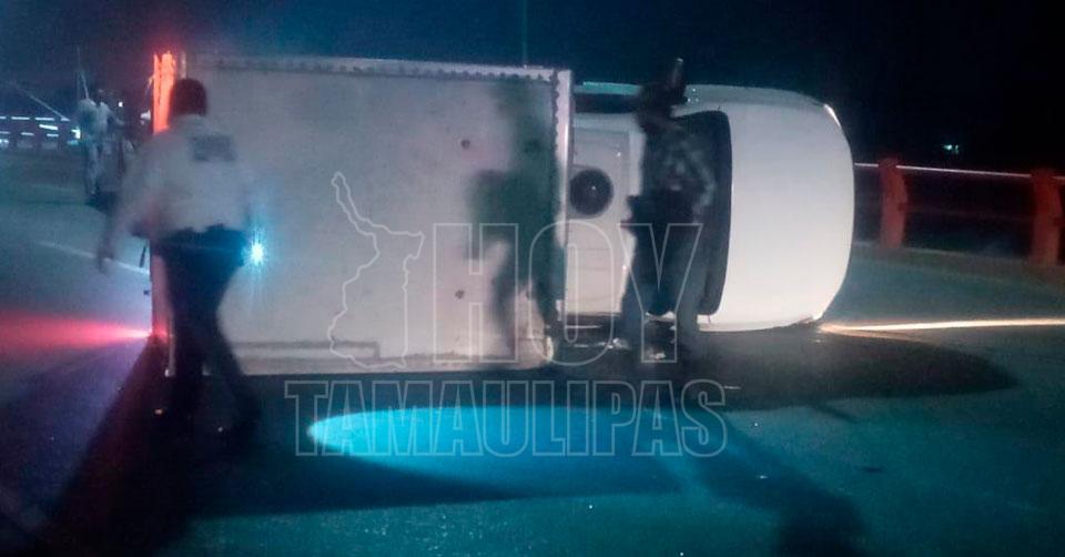 Dormita al volante y termina por volcar con cargamento de vísceras en Altamira